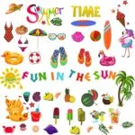 Summer themed elements, including sun, coconut tree,