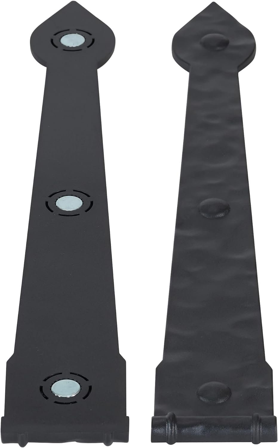 Decorative magnetic garage hinges and handles create the look of real carriage house doors on 1 and 2-car garages