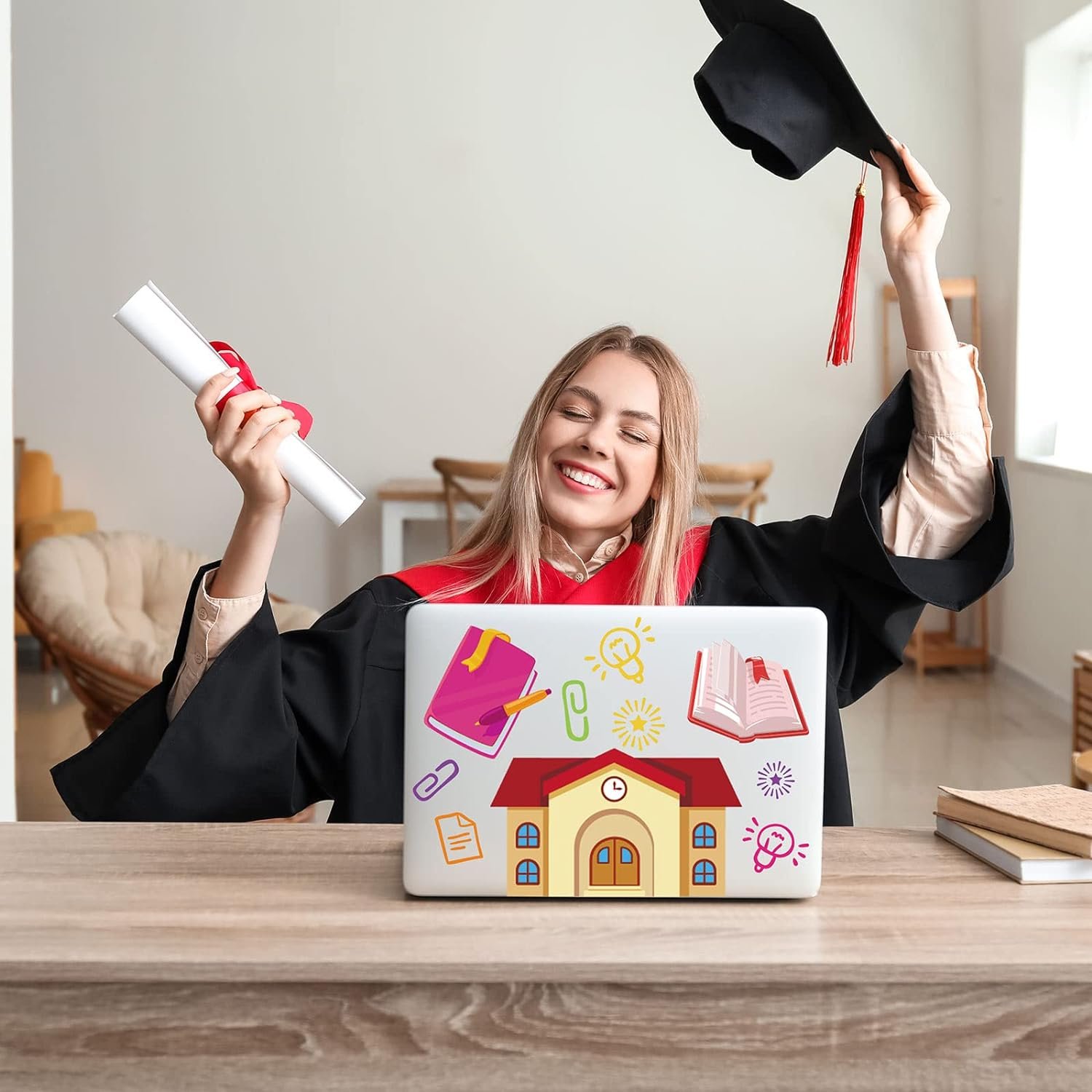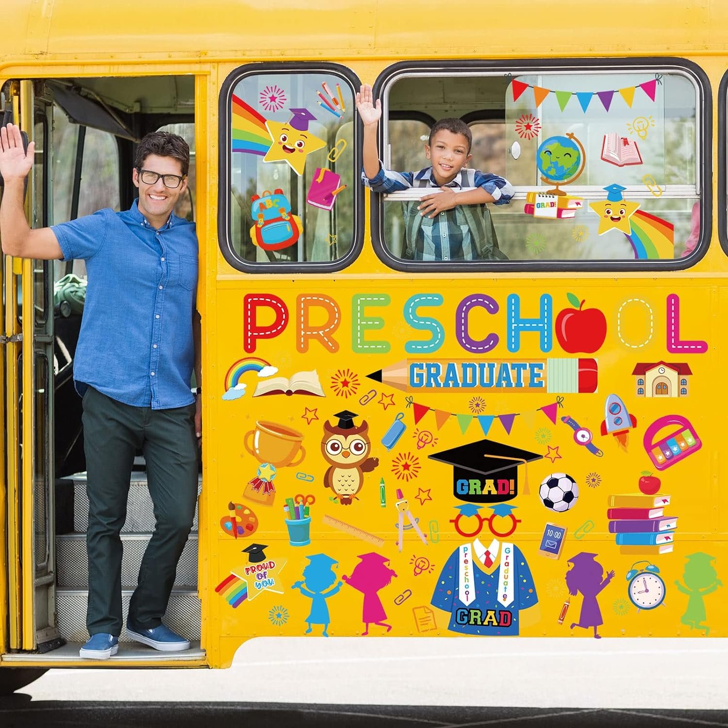 Our preschool graduation window cling stickers are designed with colorful school elements, festive and delicate, creating joyful and funny atmosphere for your home.