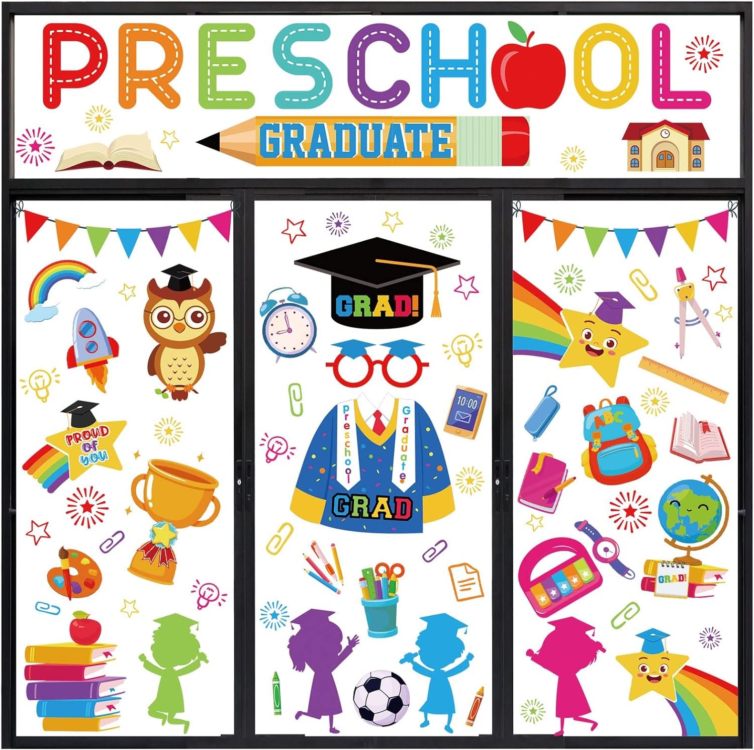 Wide Application – Our static window clings are perfect for preschool graduation, good decoration for your windows, showcase, store, restaurant window and other smooth surface.