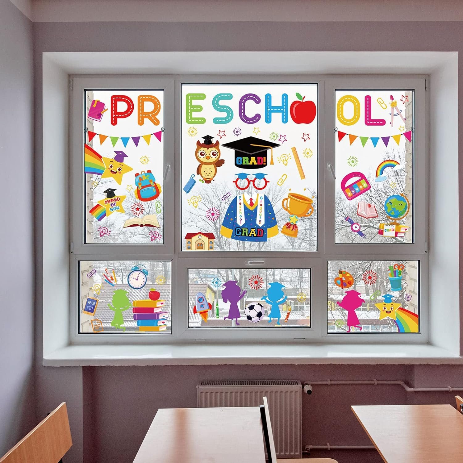 Whaline Preschool Graduate Window Clings Classroom Graduatio…