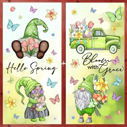 Whaline 106Pcs Spring Window Clings Watercolor Spring Gnome …